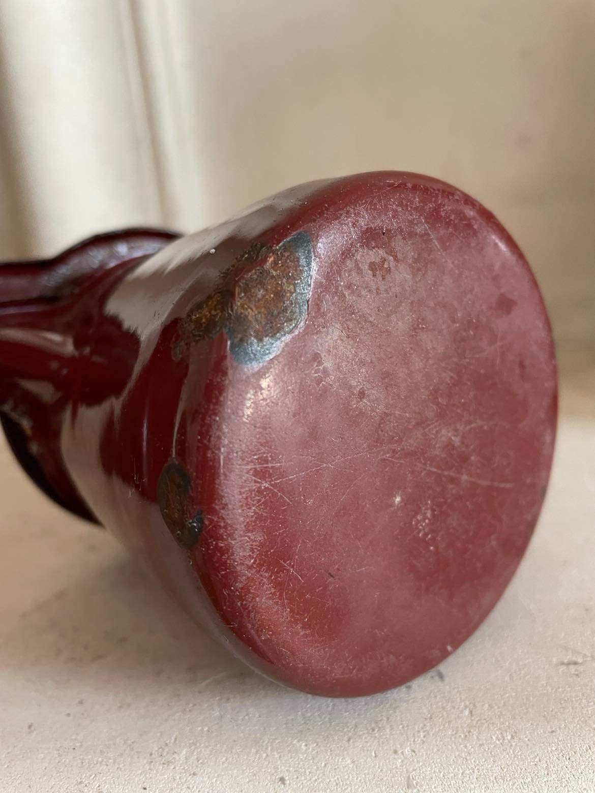 A set of two vintage burgundy enamelled coffee pots
