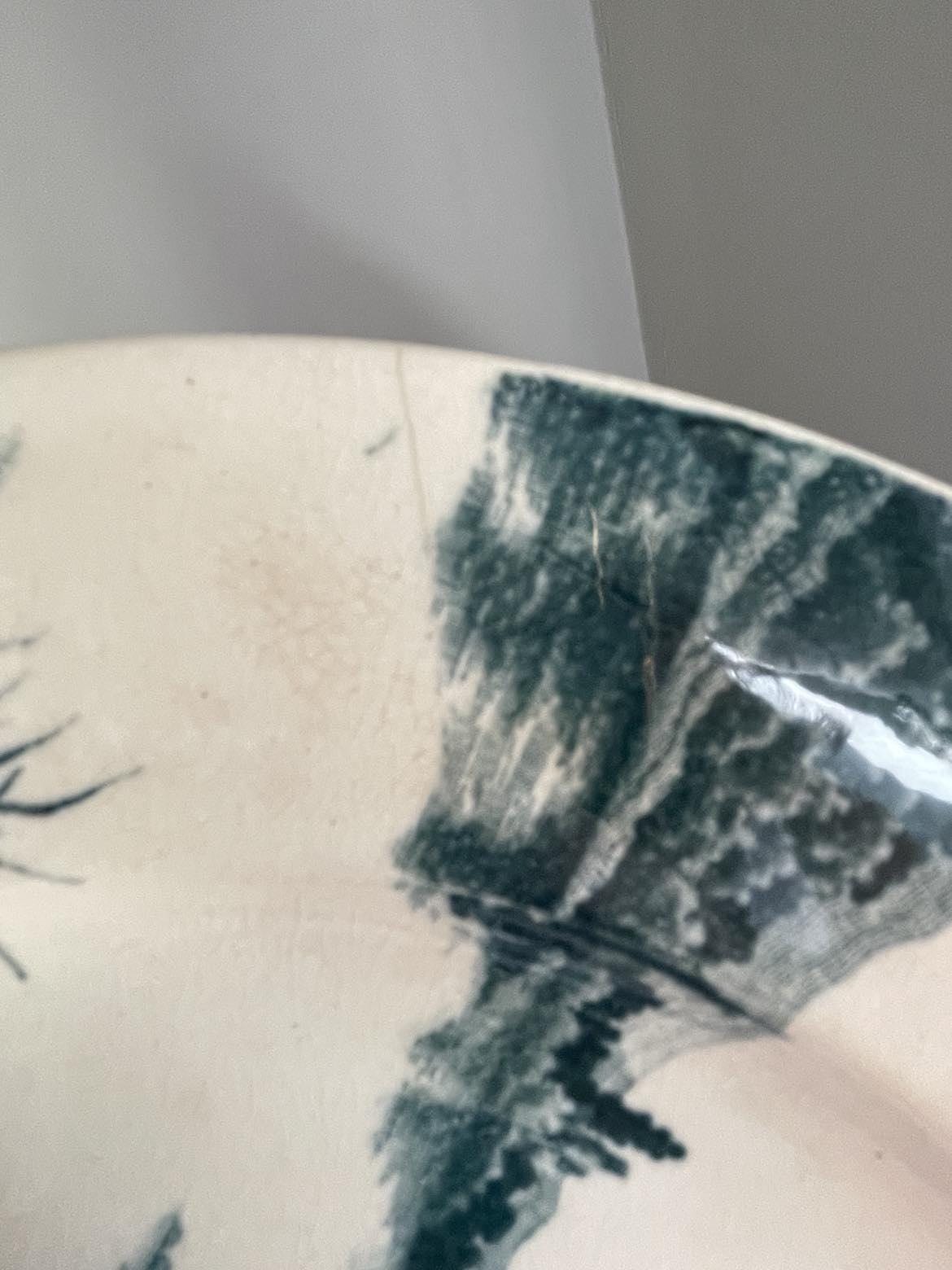 There is one fine hairline crack and some "tea staining" of the glaze - particularly to the underside - please see photos.