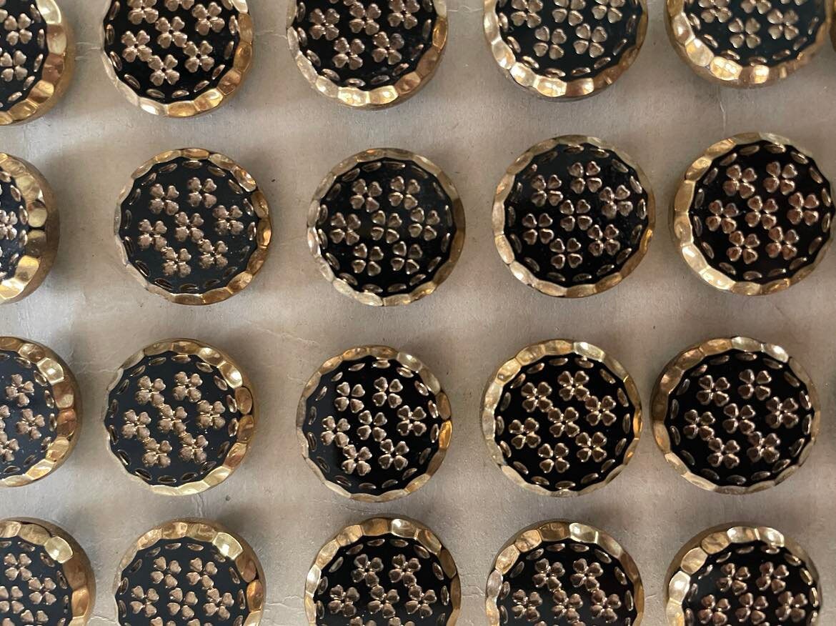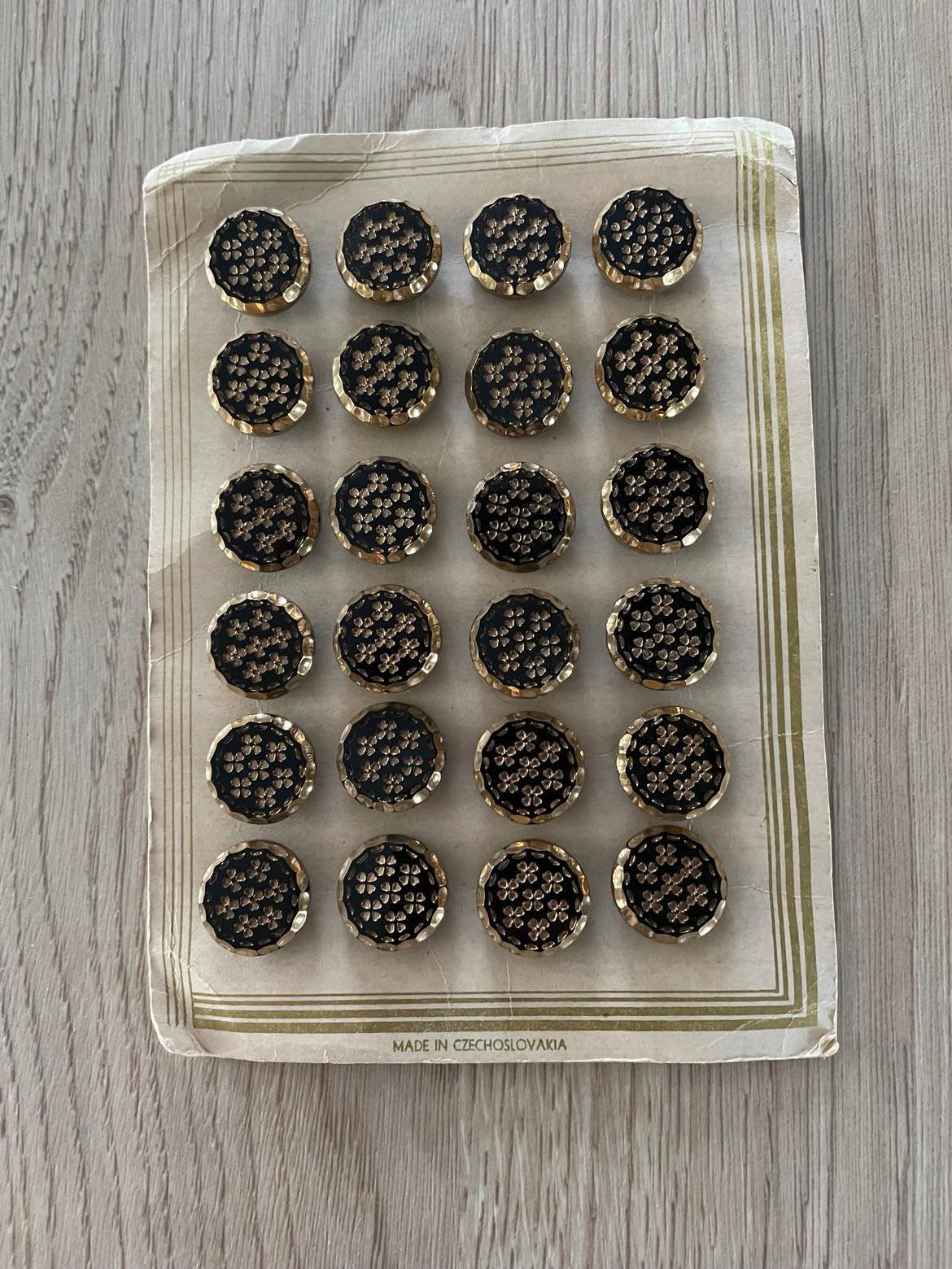 A set of 24 art deco glass shank buttons on their original backing board - made in Czechoslovakia