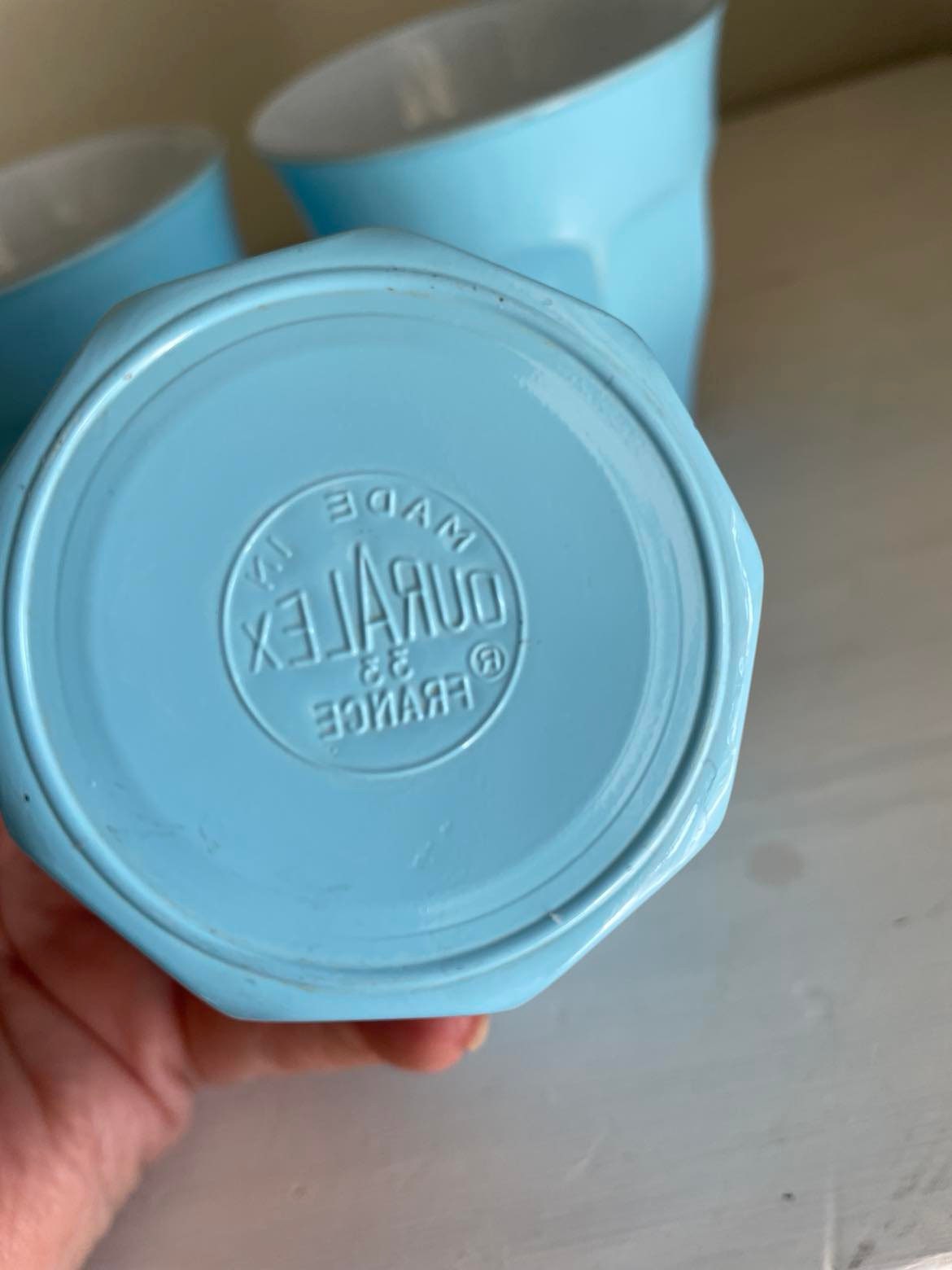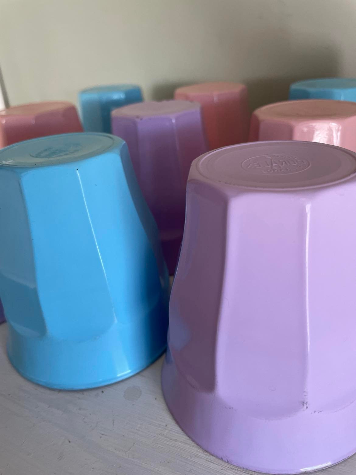 A set of 9 large pastel coloured water glasses by Duralex - 60/70's