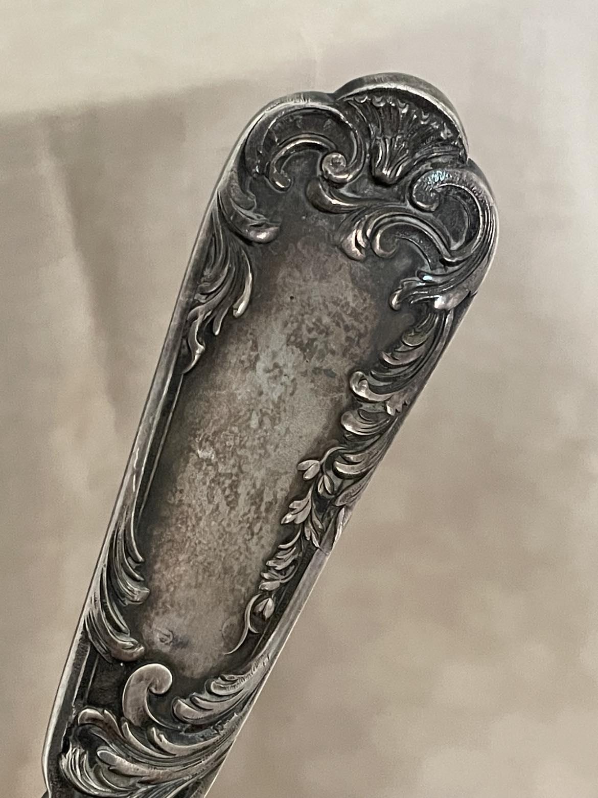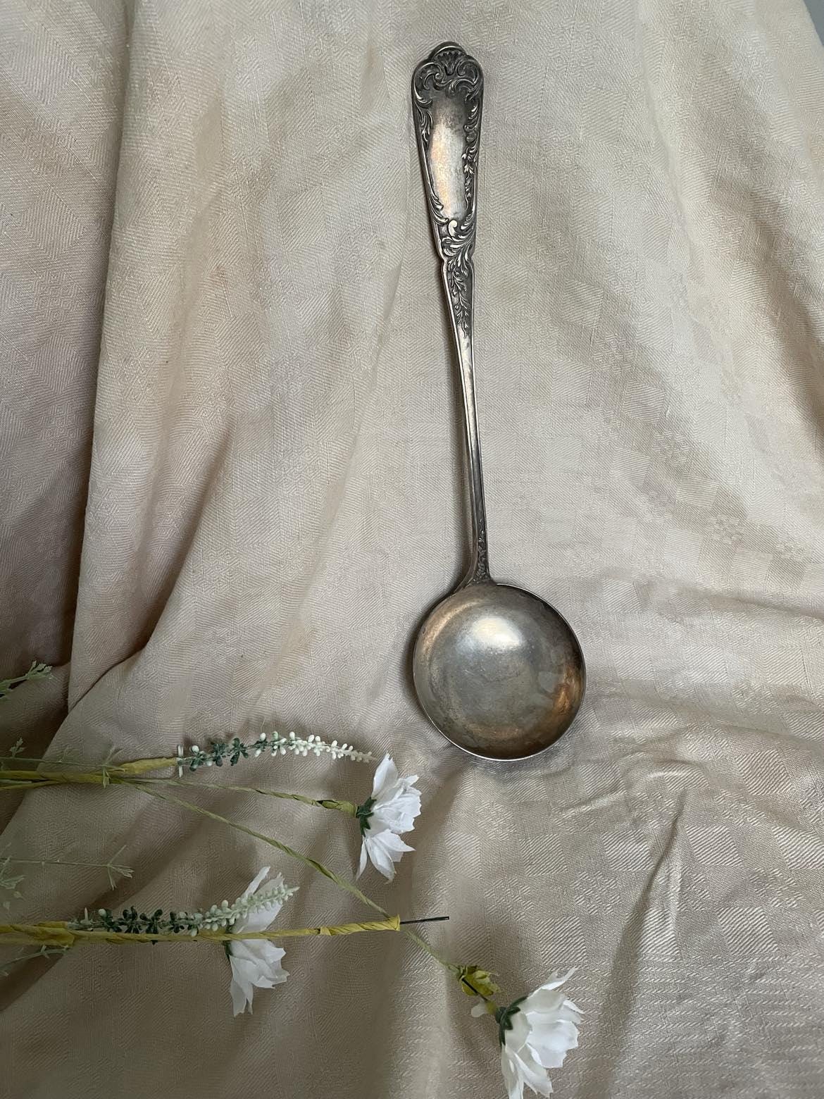 This silverplated ladle has a length of 31cm, diameter of the spoon is 9cm