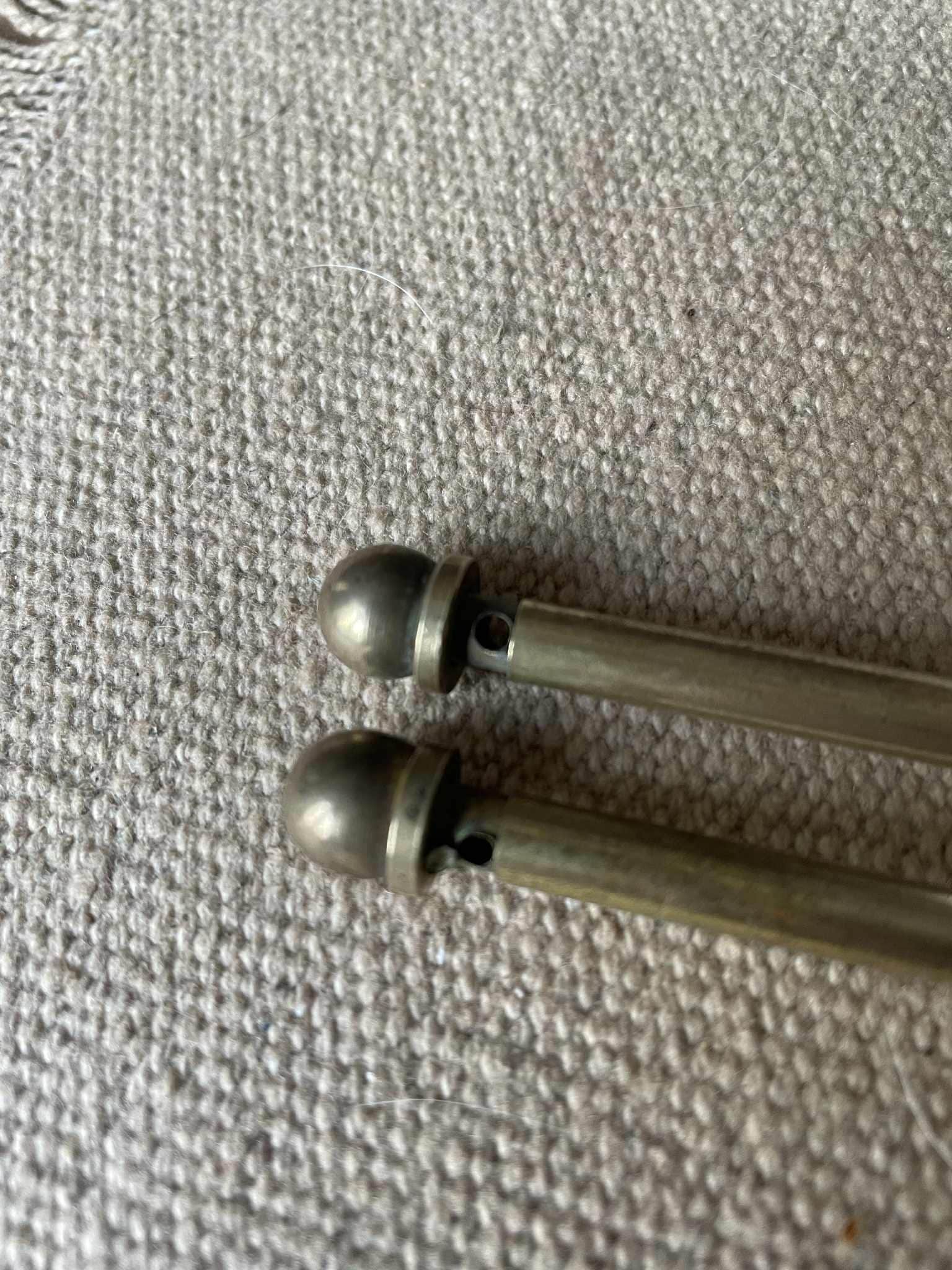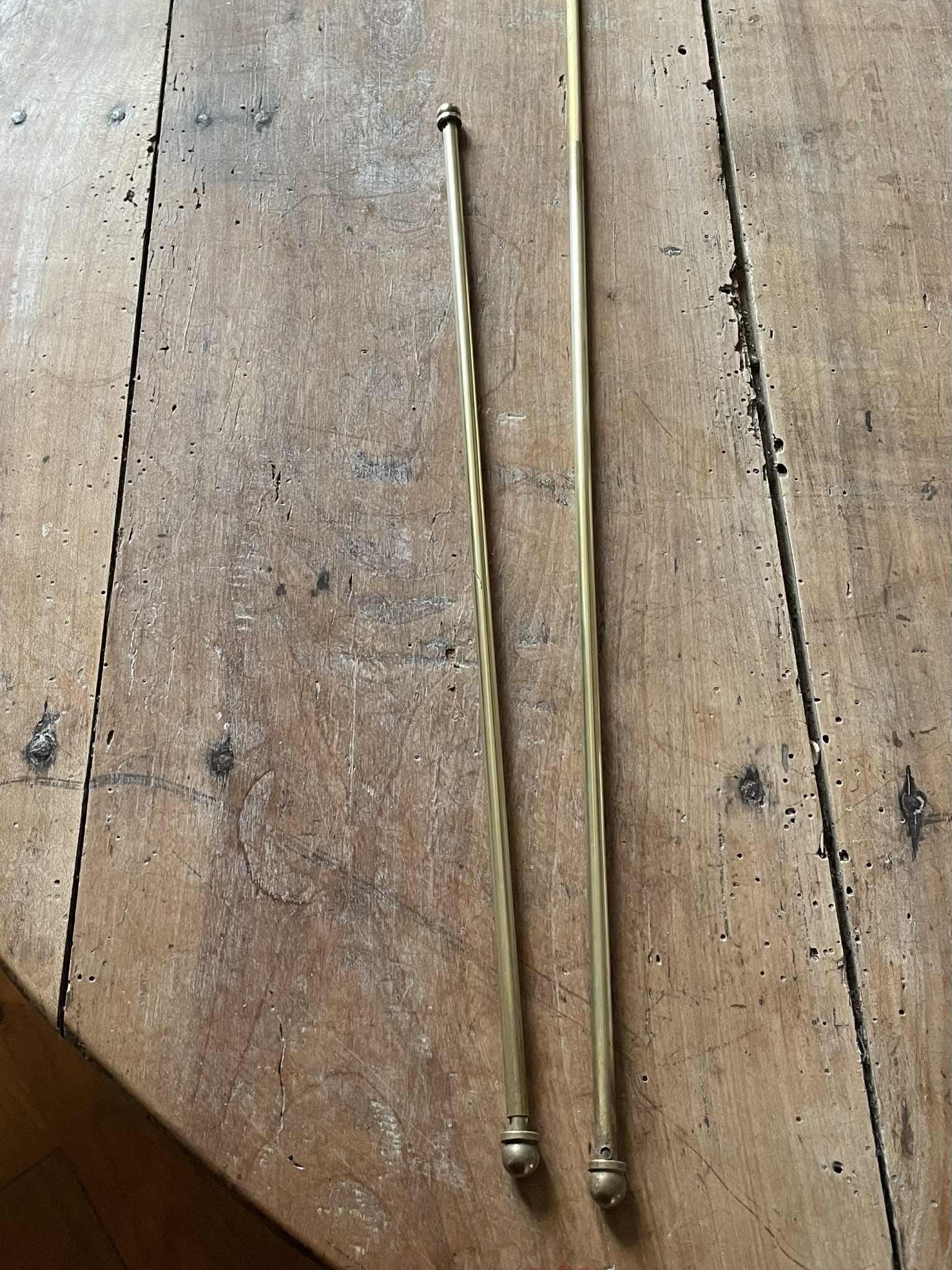 Two extendable brass lightweight curtain rods 39cm to 73cm max 6mm diameter