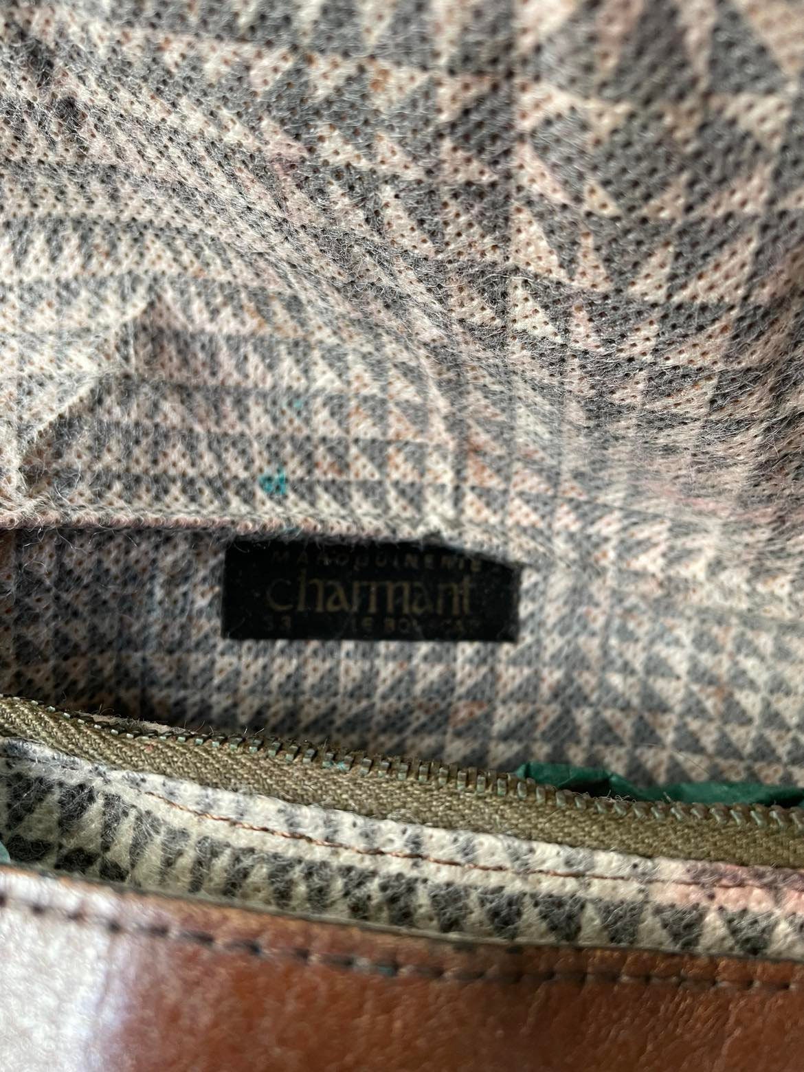 A vintage leather shoulder bag with detachable strap and fabric lining